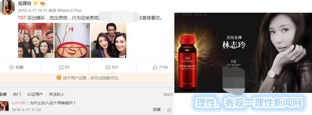 曹格妻子吴速玲顺利“入帮”后,微博评论区也变成了同样瘆人的画风,被占领得彻彻底底。女神林志玲也跑去给张庭公司做了代言,张庭把一手赤果果的明星效应从14年玩到了现在,在粉丝效应刚刚崭露头角的如今,张庭的微商帝国就已经铺开5年之久了,能不赚钱吗?
