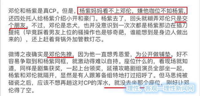 而爆料人又说了一件事儿,那就是在“V博之夜”的时候,当时邓伦想要为公开恋情做铺垫秀恩爱,因好不容易在“V博之夜”获得了与杨紫同框的机会,但是杨紫压根不想公开这段感情,于是全程显得非常冷漠。