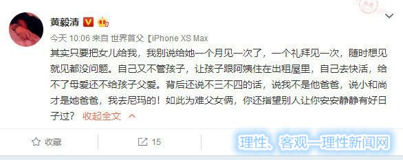黄毅清最后在字幕中再次强调,黄奕为了和男友在一起,让女儿和保姆住出租屋。为了防止女儿因为和他讲这些事情再次遭到黄奕的威胁,黄毅清又接连放狠话:黄奕只要敢再因此为难我女儿,威胁她,我就替女儿收拾你。