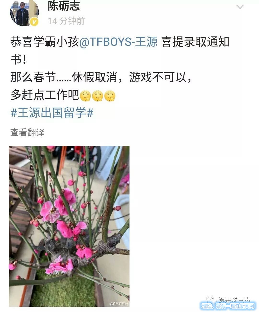 你可能不知道陈砺志是谁,但你一定知道麦特文化,陈砺志就是麦特文化的,给众多影视公司做过各种宣传案,在陈砺志发完微博的下午,王源发了一个微博,低调的表明了自己奖要被伯克利音乐学院录取,将要去美国进行学习。