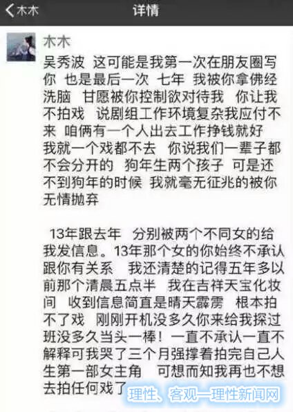 陈昱霖在朋友圈详细写了自己和吴秀波在一起相处,并且被抛弃的事情。