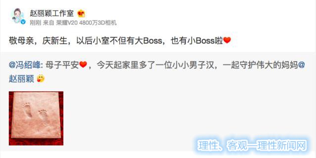 恭喜!赵丽颖产子官宣,冯绍峰:母子平安