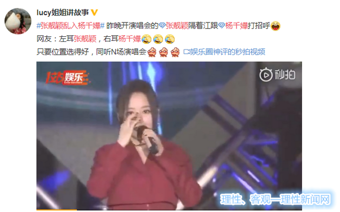 张靓颖还隔江向千嬅姐打了招呼,这波操作也是难得一见,相当可爱了。