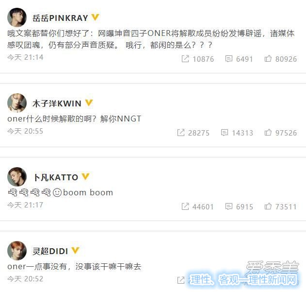 ONER组合否认解散 成员发微博进行辟谣 oner为什么叫扑克男团?(2)