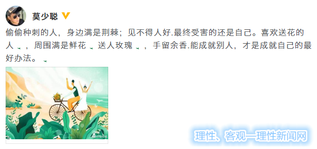 张丹峰被爆出轨续 莫少聪微博发文 网友猜测与洪欣婚姻传闻有关