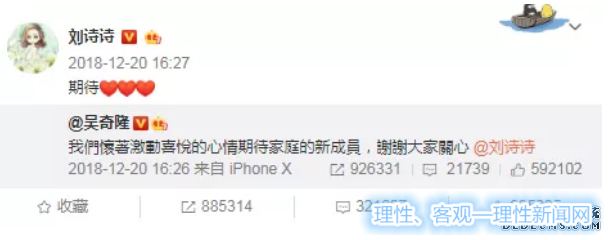 2018年12月20日,吴奇隆官宣刘诗诗怀孕喜讯,据了解当时的刘诗诗已经有5个月的身孕。
