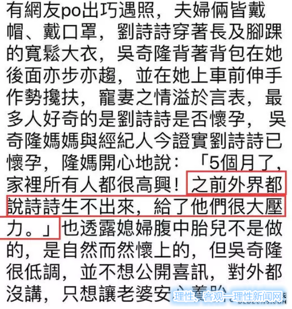 刘诗诗为吴奇隆喜添麟儿,除了吴奇隆高兴,最重要的是终于能够堵住吴妈妈的嘴了吧。吴奇隆宠妻肉眼可见,但让人一直诟病的是吴妈妈。看看吴妈妈接受采访说的这番话,“之前外界都说诗诗生不出来,给了他们很大压力”。