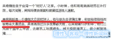 他的爸爸是“钞票粉碎机”吧……就算吴奇隆努力工作还完欠款,也没得到父母一句好话,欠债的父亲竟然埋怨吴奇隆成了明星导致一家人欠债无法跑路。