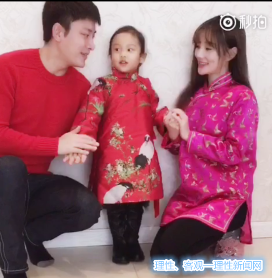 贾乃亮李小璐携女儿一家拜年 甜馨身穿红粉旗袍 非常可爱!(2)