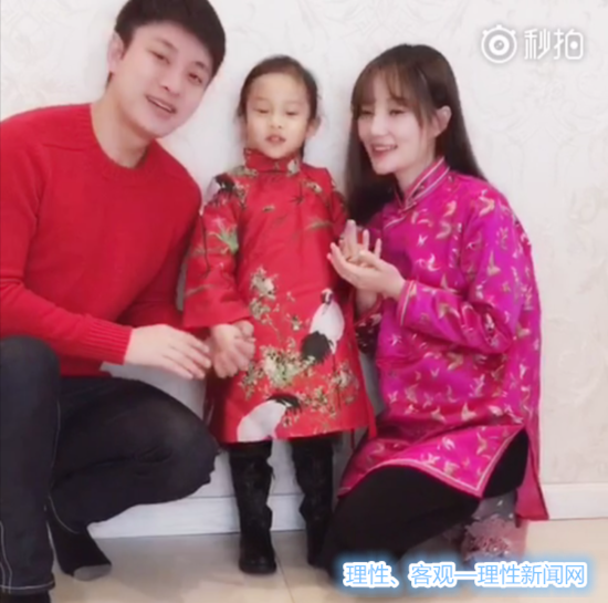 视频中一家三口穿着喜庆,小甜馨儿同李小璐身穿一红一粉旗袍,笑容灿烂,非常可爱。