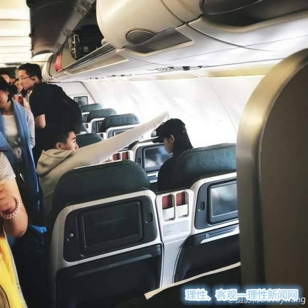 从照片中可以看出当时乘客正在上飞机,何猷君跟奚梦瑶正坐在经济舱的座位上。奚梦瑶戴着帽子低着头坐靠窗位置,而何猷君则正在旁边的位置上坐着并穿上自己的外套。