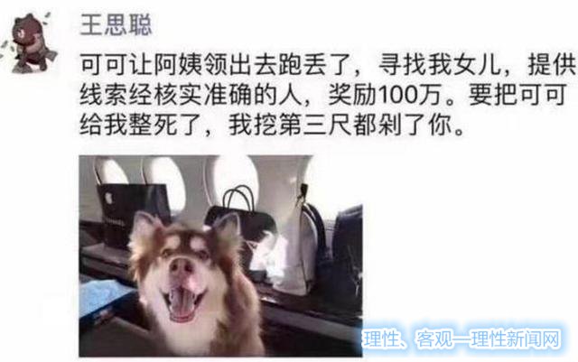大家应该都知道,王思聪有一只非常令人羡慕的狗,名叫“王可可”,曾经有人造谣说因为家里阿姨的疏忽,把王可可给弄丢了,王思聪知道后非常的着急,立马在网上发布消息,重金悬赏百万来寻找丢失的王可可,这件事件当时也是非常的轰动的,于是许多人说活得不如王思聪的狗。