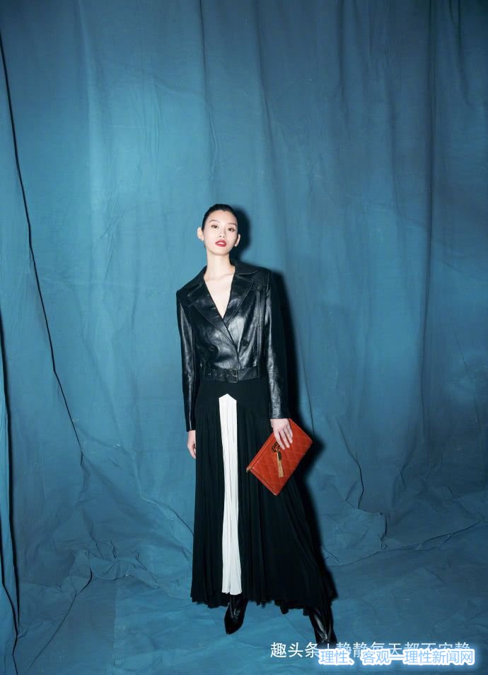 手上是一个棕色的纪梵希手包,令一身黑白的搭配不显得那么的单调。不过奚梦瑶的肤色真的是一大亮点,一身黑色裙装,衬的肤色越发地透亮了,尤其是在灯光的映衬下下,简直快要白得发光。