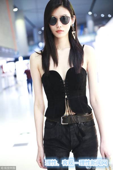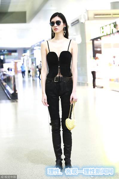 奚梦瑶现身上海机场 身穿吊带马甲秀大长腿 感指数突破天际!(4)