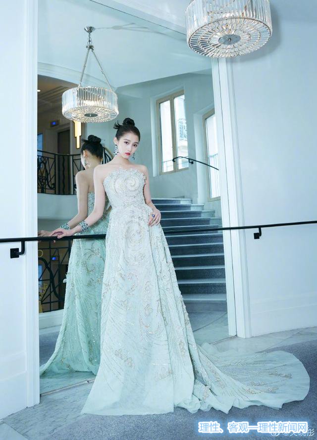 关晓彤微博晒照 穿薄荷绿礼服亮相戛纳红毯 关晓彤的胸有多大?(2)