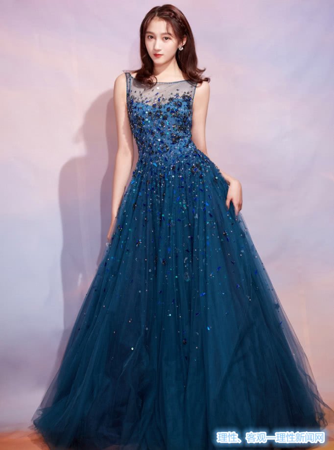 关晓彤身穿一袭蓝色长裙尽显优雅,修身的裙子展现了关晓彤苗条高挑的身材,裙身上面点缀着精美的亮片,显得十分的浪漫梦幻,轻盈飘逸的薄纱裙摆又彰显了优雅端庄。