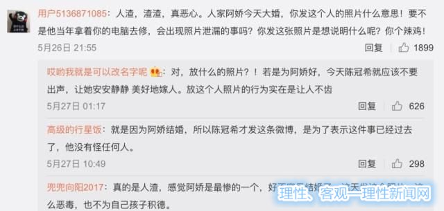 说陈冠希是人渣,渣渣,真恶心。人家阿娇今天大婚,你发这个人的照片什么意思!要不是他当年拿着你的电脑去修,会出现照片泄露的事吗?你发这张照片是想说明什么呢?你个辣鸡!