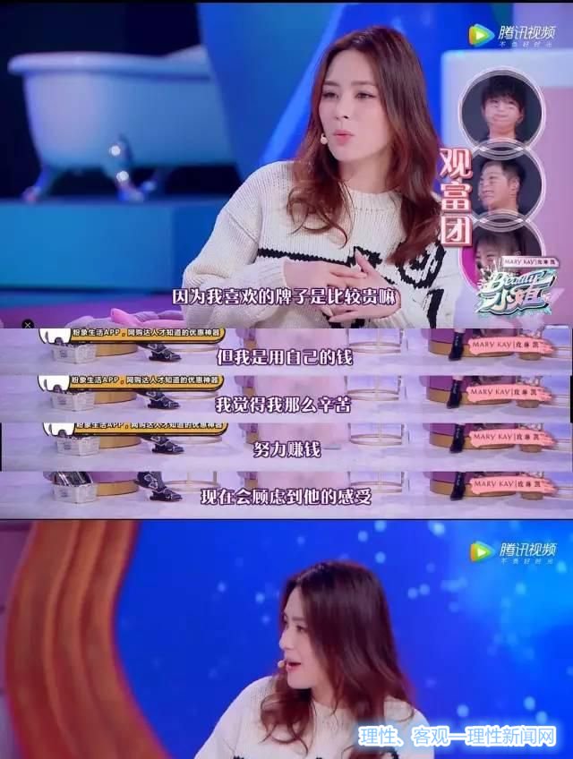 她很委屈地解释:因为我喜欢的牌子是比较贵嘛,但是我用自己的钱,我觉得我那么辛苦努力赚钱买,买点自己喜欢的东西也是应该的嘛。现在会考虑他的感受,就不敢买。