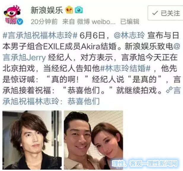 随着林志玲引“爆”微博,言承旭也“爆”了。新浪娱乐称,言承旭从经纪人那儿听闻林志玲结婚后,第一反应是:“真的啊?”
