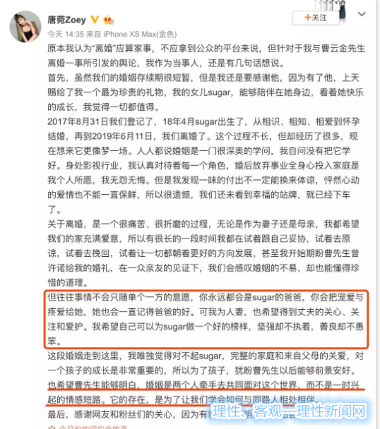 而随后,曹云金的前妻唐菀,也发微博回应此事。字里行间,虽没有过多的指责,但却看得人颇为心酸: