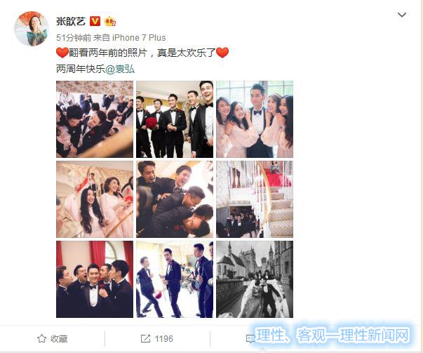 张歆艺微博晒婚礼照片 庆祝与袁弘结婚两周年 张歆艺的老公是谁?