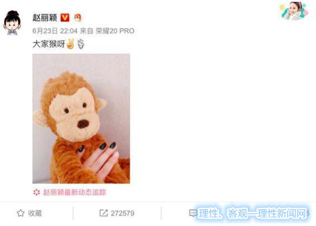23日晚间,赵丽颖在自己的微博上发布了一张照片,这也是她在生下小宝宝后的首发照。照片中虽然没有她本人的正脸,但是也开心的和大家打招呼,配文道:大家猴呀。还调皮地配上了一张猴子玩偶的照片 。看得出来,晋升为妈妈的她童心依旧。