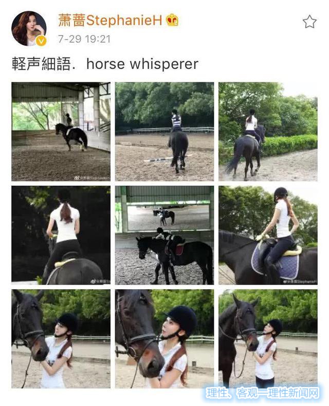 7月29日,萧蔷晒出了骑马的照片,并且配文:“轻声细语.horse whisperer”。