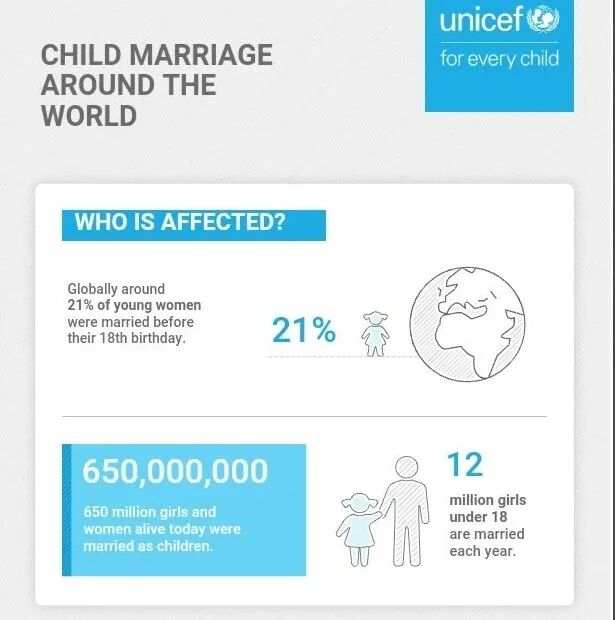 也就是说,在这个世界上大概每3秒就有1个18岁以下的女孩结婚了。