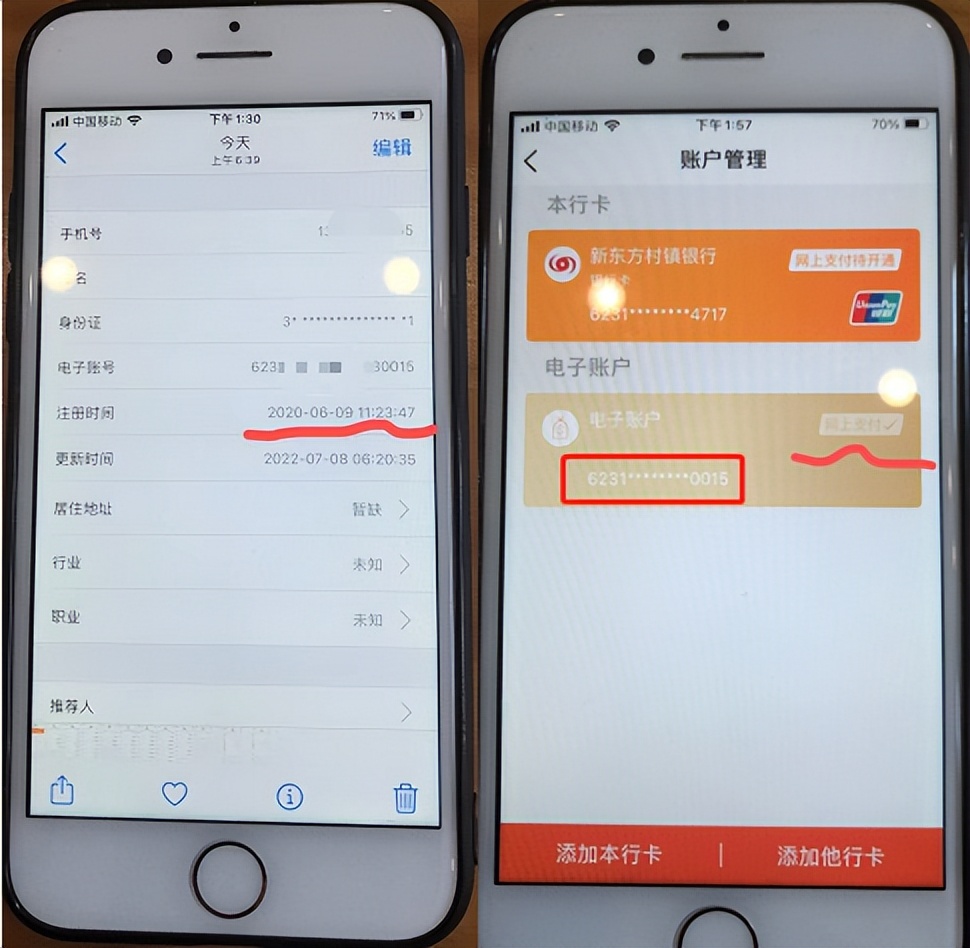 2020年6月9日,孙哲于当日10时45分在开封新东方村镇银行柜台开出一张实体卡,存入100元,然后离开银行。同日11时20分,已离开银行的孙哲在手机银行APP上转账了250万元的7天通知存款。确认:“11点23分我不在银行柜台,银行未经我同意为我开了一个电子账户。”凤凰网财经“银行财富之眼”已被开户验证发现,新东方农行不仅开卡后账户异常,就连存款人开户前也有流水现象。邵红告诉凤凰网财经“银行彩燕”,她于2020年11月28日在新东方农行柜台开户,当日通过电子账户购买了50万存款产品。邵红今天一大早查看了自己的电子账户,发现在柜台开户之前,她已经有了交易记录。